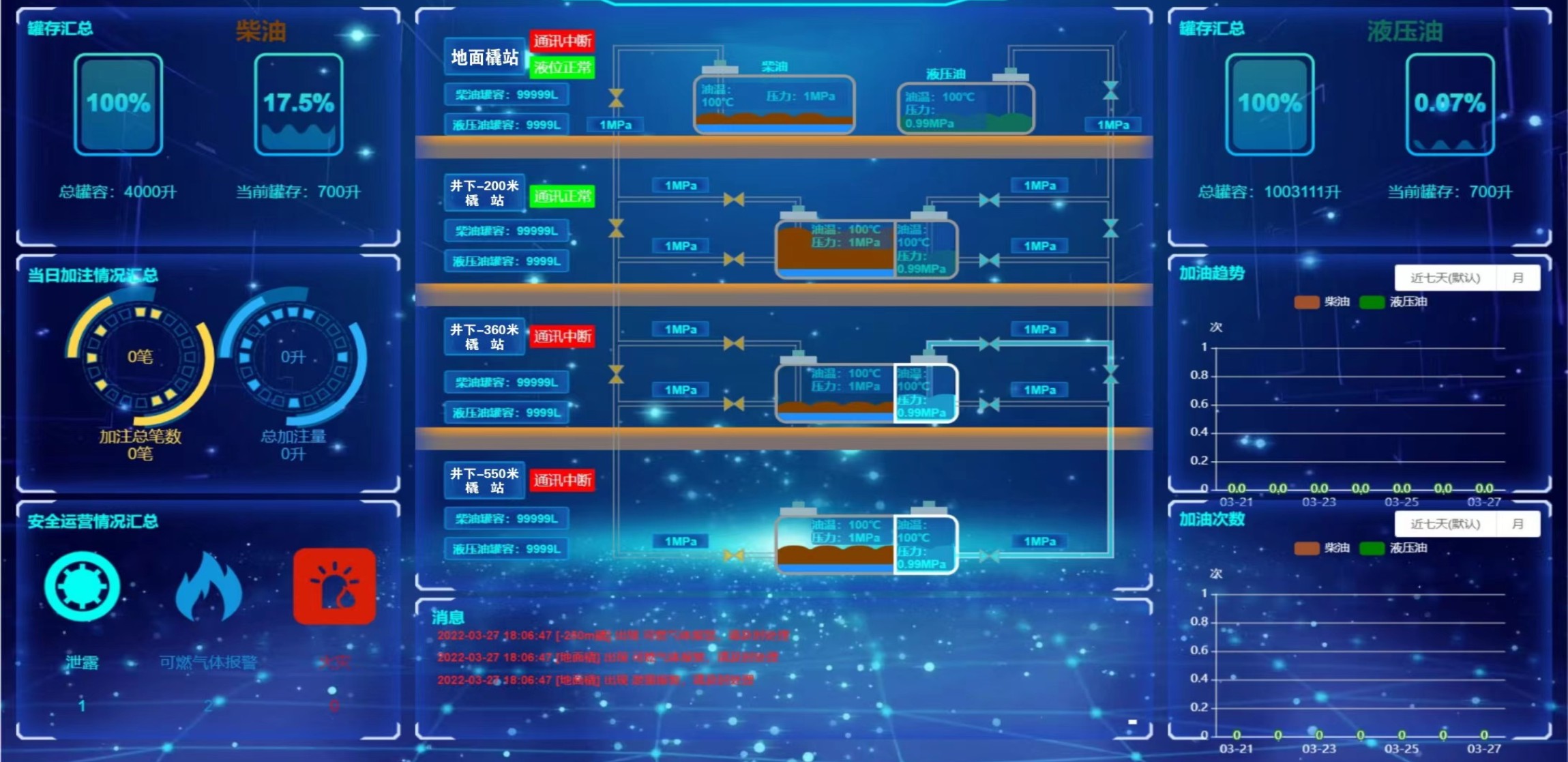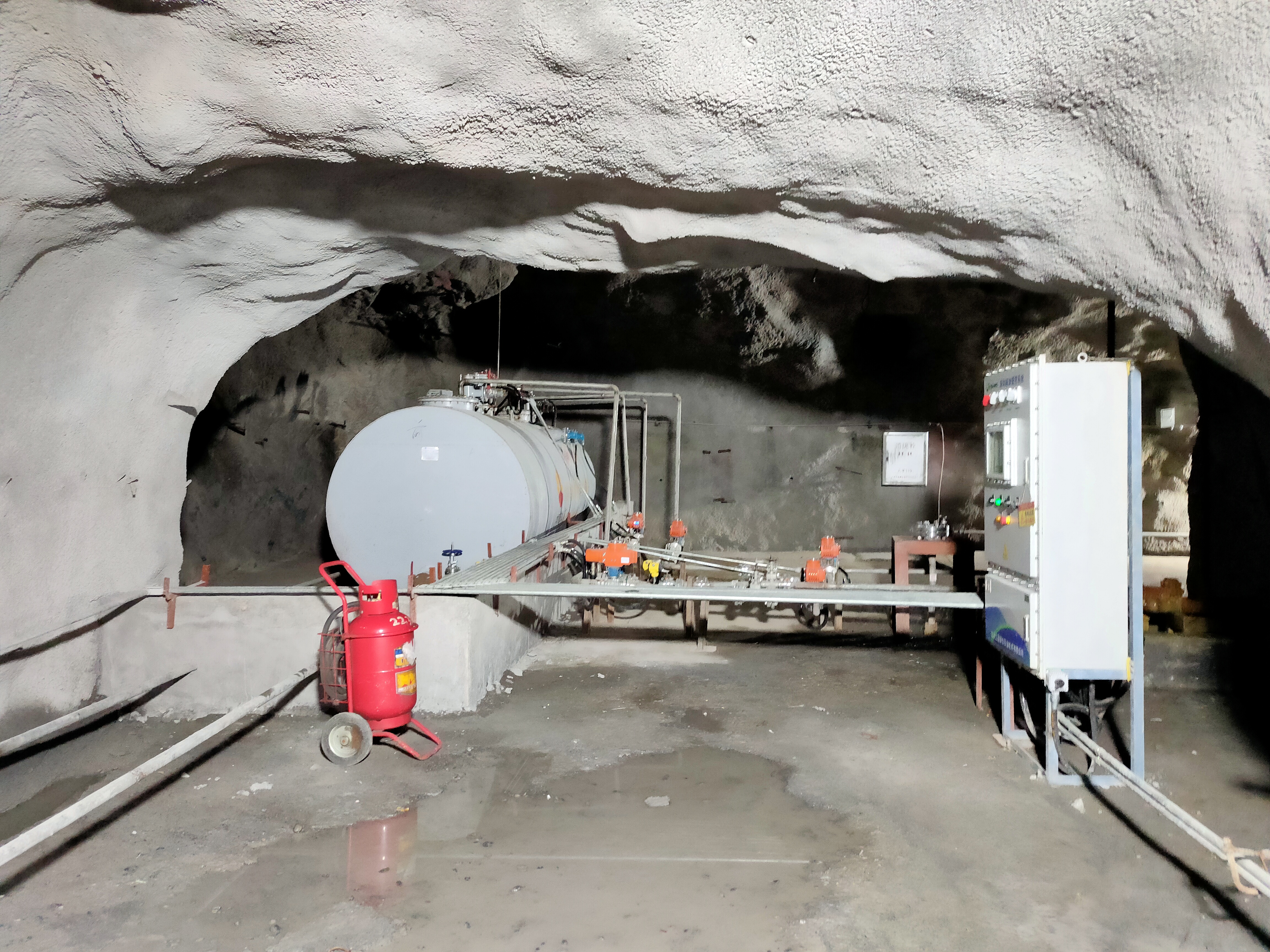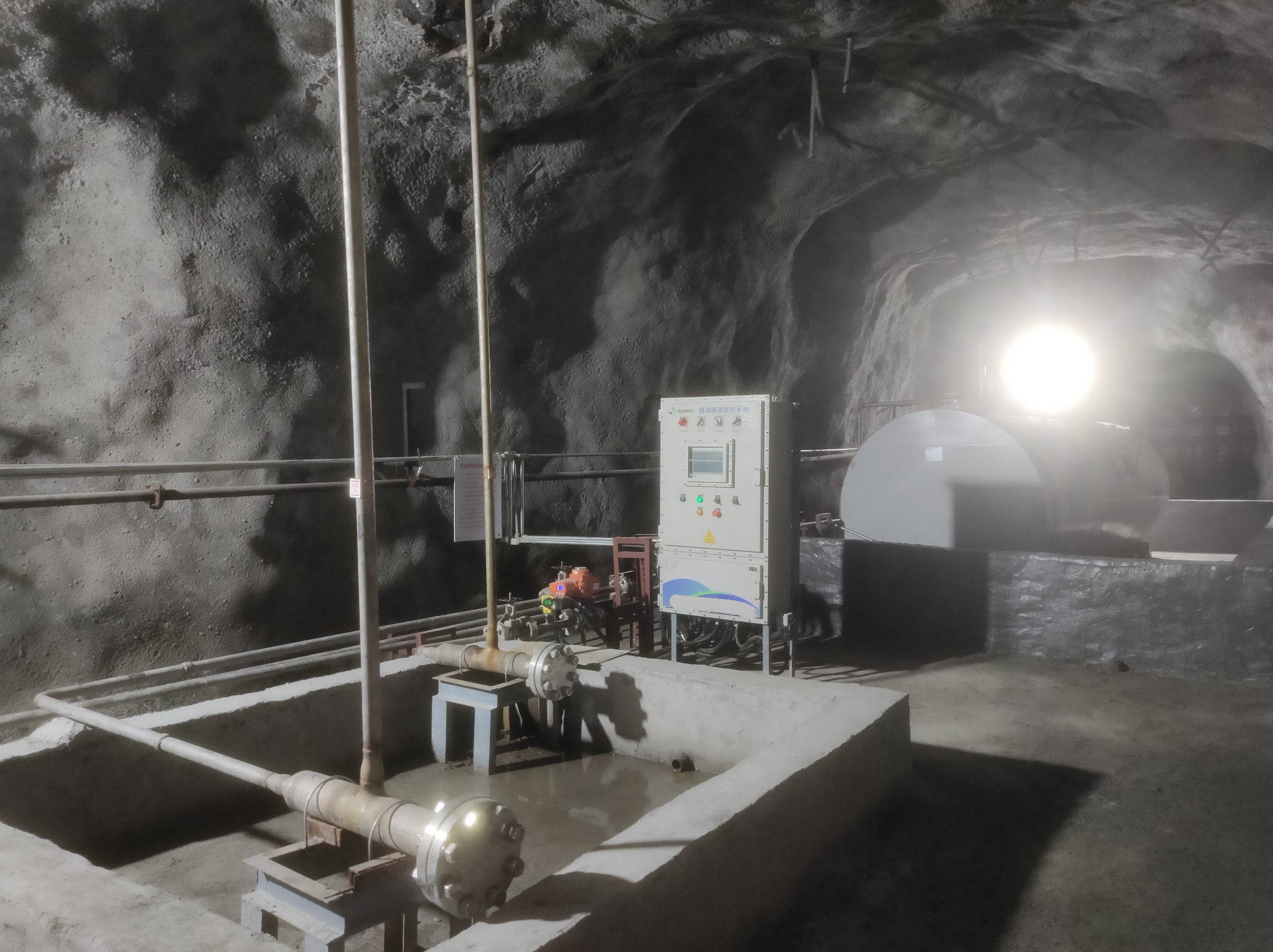 凡口鉛鋅礦井下680米智能供油系統(tǒng) 目前正有序施工中, 預(yù)計(jì)9月底完工并投入使用。該項(xiàng)目為全國首創(chuàng), 由韶關(guān)企業(yè)進(jìn)行技術(shù)攻堅(jiān) 并申請多項(xiàng)國家專利, 擬申報(bào)吉尼斯世界紀(jì)錄 “全球最深的智能供油系統(tǒng)”。 凡口鉛鋅礦井下智能供油系統(tǒng) 需在地面設(shè)置橇裝加油裝置, 并分別在地下 330米、480米和680米處 建設(shè)智能化供油系統(tǒng), 通過鉆孔鋪設(shè)輸油管線, 將油品從地面輸送到井下。 地下330米智能加油點(diǎn), 目前已進(jìn)入收尾階段, 現(xiàn)場有兩根 從地面裝置接下來的輸油管, 用于工程車加油, 另一邊也有兩根輸油管輸送到 地下480米和680米的智能加油點(diǎn)。 別看油管很細(xì),鉆孔不大, 但施工難度并不小, 全長3千多米的輸油管, 垂直打孔偏差不能超過1米。 作為亞洲最大的 單體鉛鋅銀礦生產(chǎn)基地, 凡口鉛鋅礦 有井下工程車輛和設(shè)備100多臺(tái), 井下用油量大。 井下智能化供油系統(tǒng)啟用后, 不僅解決井下用油安全、環(huán)保風(fēng)險(xiǎn), 同時(shí)降低生產(chǎn)用油成本, 推進(jìn)凡口鉛鋅礦建設(shè)智能化礦山, 實(shí)現(xiàn)“無人開采”。 如果鉆孔偏差太大,就找不到鉆下來的孔,影響輸油管道的布設(shè),增大成本。3千多米有5千多個(gè)焊接點(diǎn),所有的焊接口都要達(dá)到高壓管道的焊接要求,這個(gè)項(xiàng)目是全國首創(chuàng),在全國所有礦山企業(yè)中,我們是首次使用通過輸油管道往井下輸油,并且實(shí)現(xiàn)智能控制的方案。 這個(gè)月底把地下330米加油點(diǎn)完工,開始加油,9月底把底下480米和680米開通使用。希望通過這個(gè)項(xiàng)目打造創(chuàng)新科技的韶關(guān)樣板,把先進(jìn)的經(jīng)驗(yàn)和技術(shù)推廣到全省、全國乃至全球。